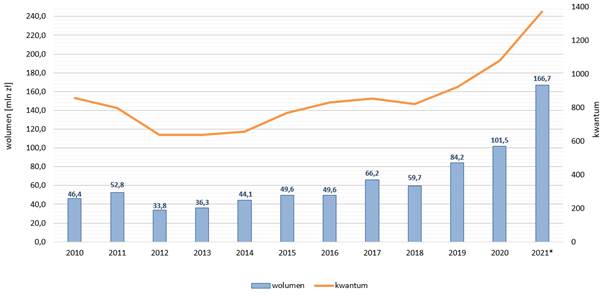 *wartość w nieznacznym stopniu szacowana – na dzień sporządzania tej analizy dysponujemy ok. 95% danymi z roku 2021.