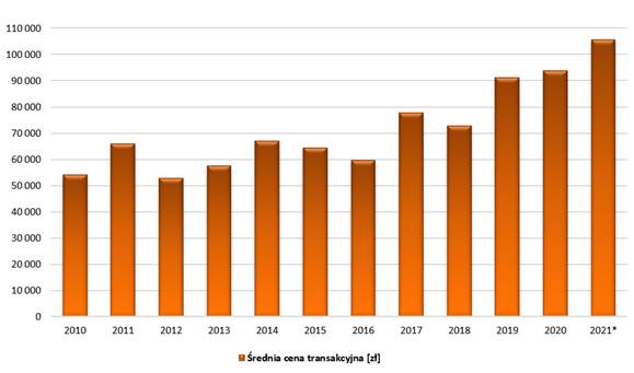 Rys. 5. Średnie ceny transakcyjne gruntów w latach 2010-2021